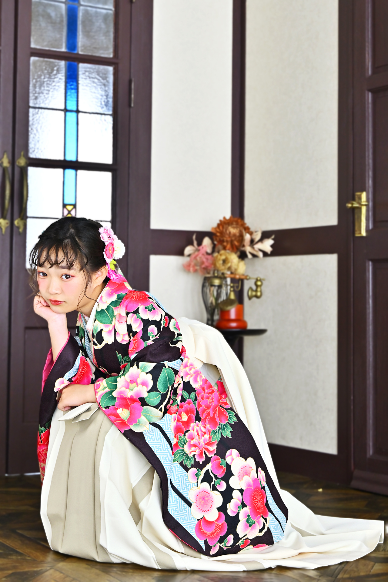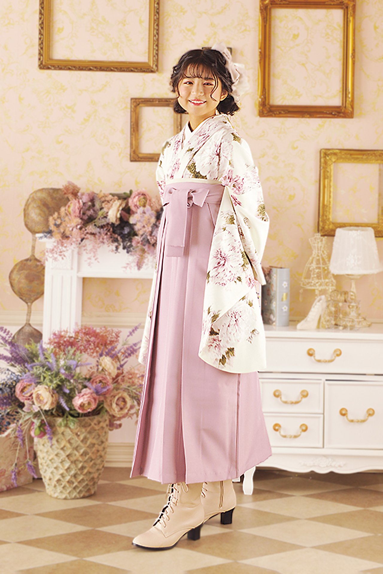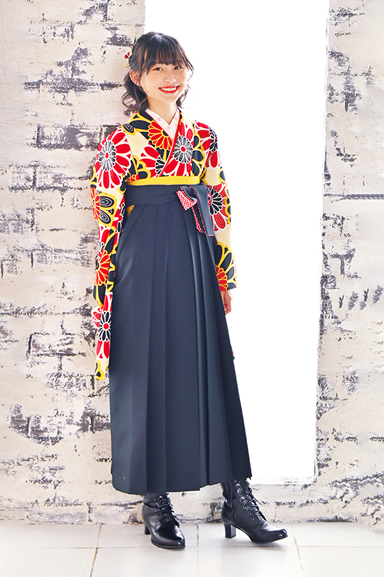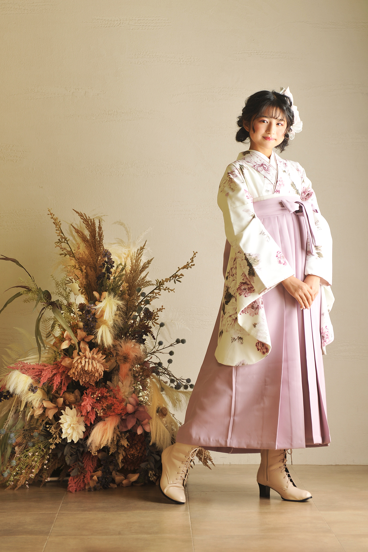 ブーツにしたりヘアーに金箔をつけたり、こだわりポイントを1つ入れるだけでおしゃれはかま上級者になれます。
