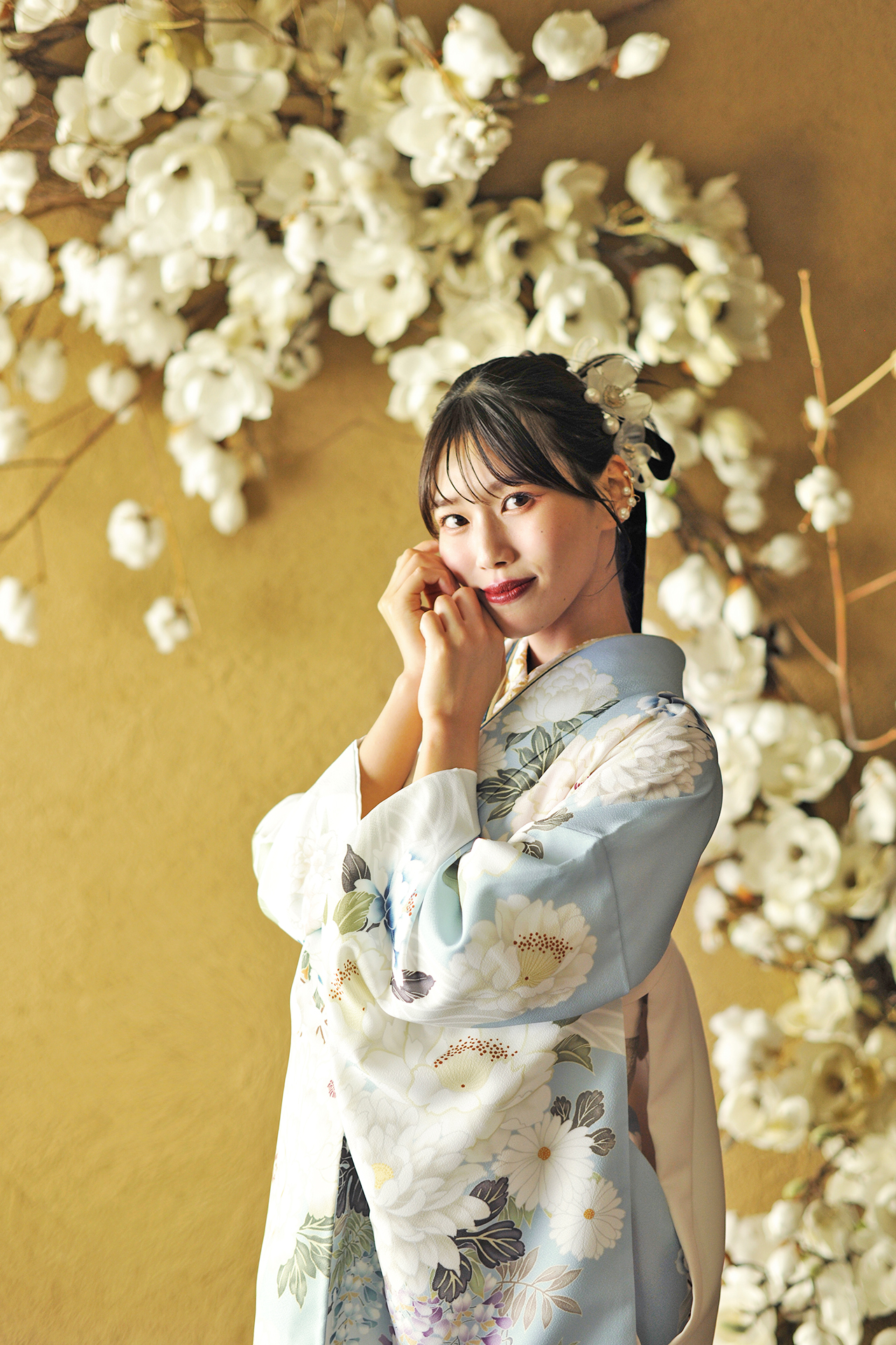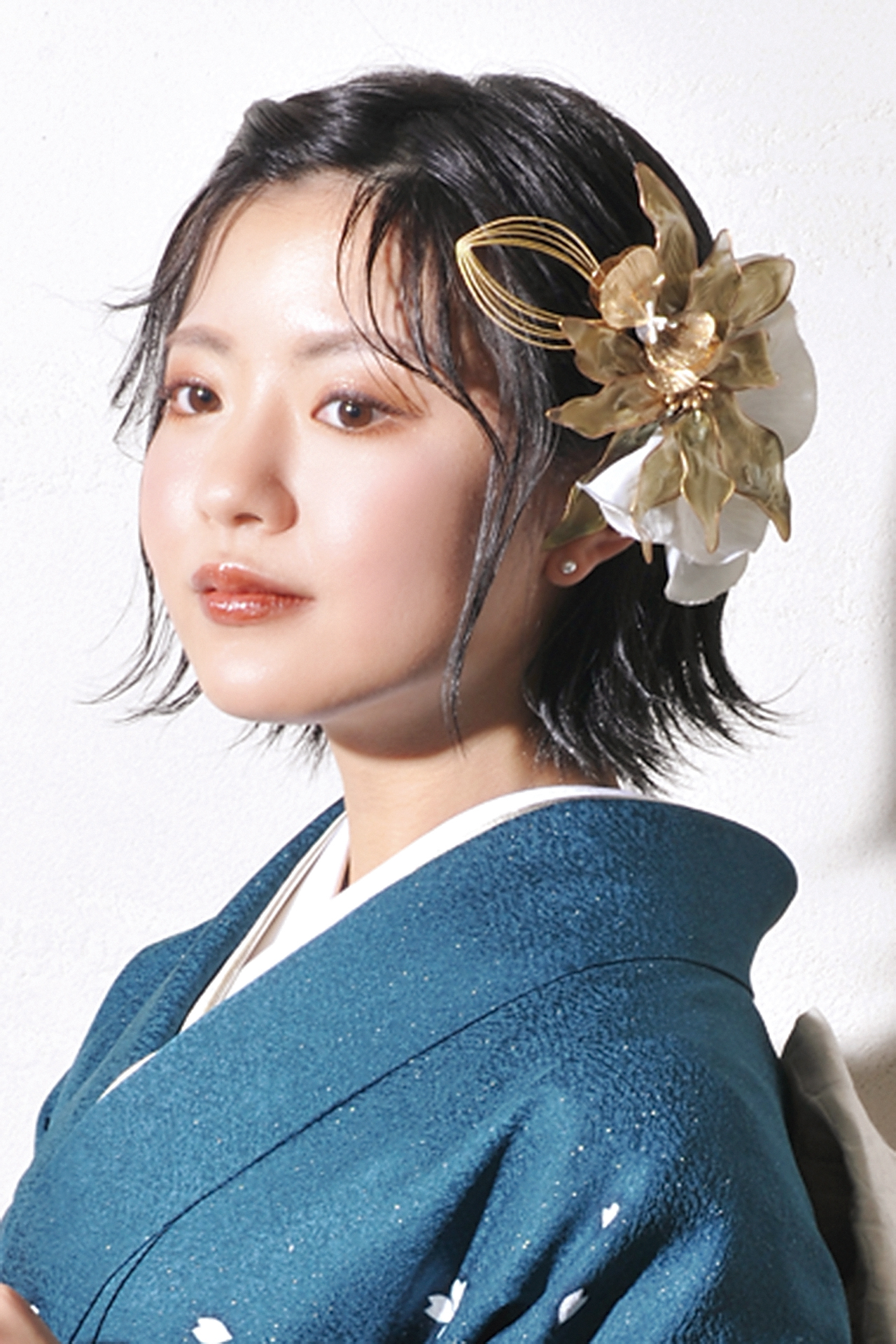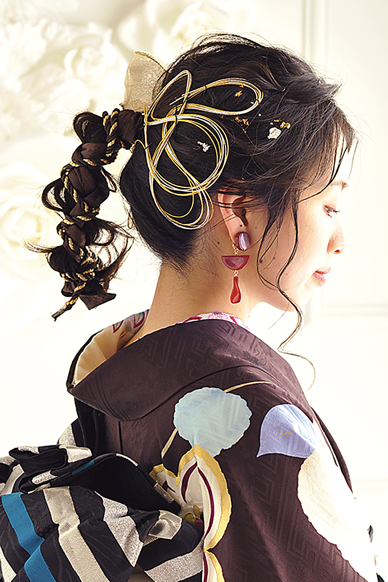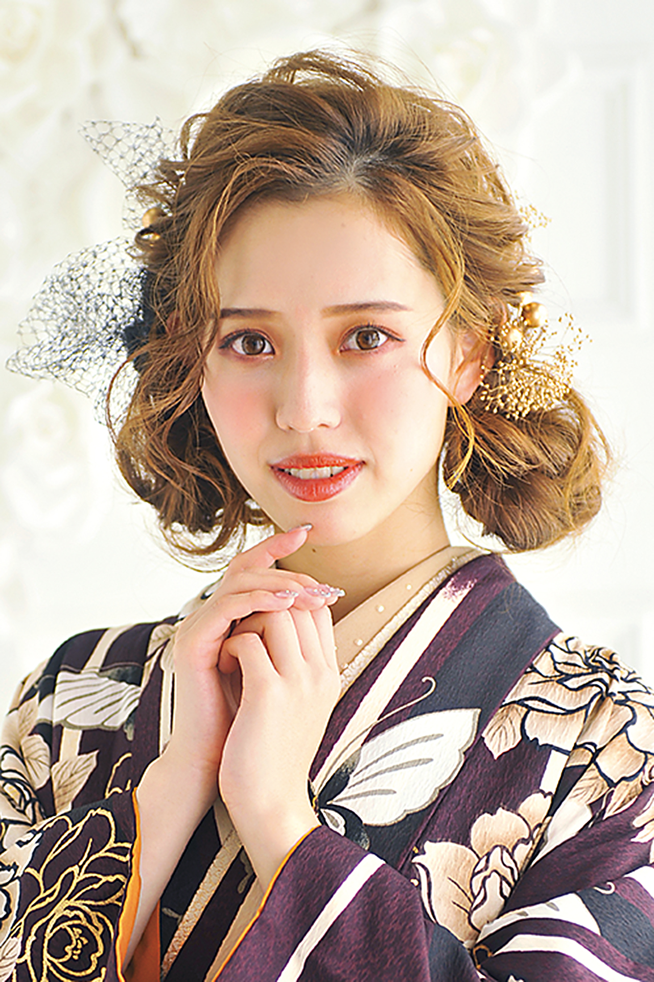 プロのヘアメイクがドレスアップし女性カメラマンの